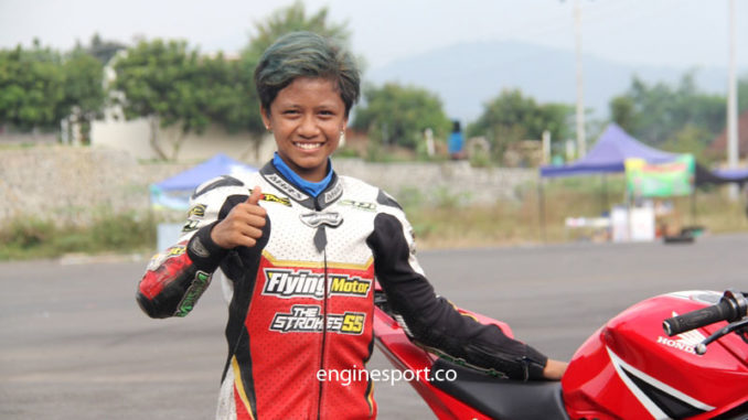 “Kalau matic kurang menantang, makanya saya pindah ke bebek dan sport. Nggak masalah harus duel dengan lelaki, saya akan menghadapinya sekaligus meraih podium,” kata Kayla NR pada enginesport.co
