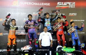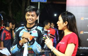 “Setelah bebeerapa lap baru sadar kalau tekanan angin ban depan berkurang. Makin lama makin parah tapi saya berusaha mengendalikan motor agar tidak terjatuh, apalagi pembalap di belakang saya juga makin mendekat. Alhamdulillah akhirnya bisa finish terdepan dengan ban depan gembos,” senyum Febran Muhammad Yusuf.