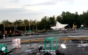 Enginesport.co – Beebot Turbo Clash Drag Series ke 3 di sirkuit Lanud Gading Wonosari Jogjakarta (6/11) awalnya berjalan lancar. Matahari lagi panas panasnya, open gate peserta mulai gaspol di 2 lintasan lurus. Tak ketinggalan MC mulai komen di tayangan langsung dan live streaming. Menjelang jam 12.00 pas jeda isoma tiba tiba mendung gelap, hujan mulai turun dengan derasnya. Di barengi angin puting beliung menerjang arena balap selama 1 jam. Tak ayal tenda padock, media, sekertariat, medis, live streaming, panggung podium, pagar, dll porak pranda.