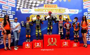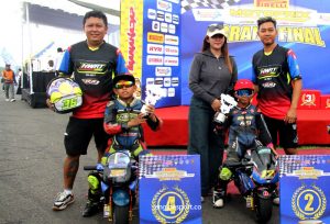 “Strategi kabur duluan ini sukses menghasikan podium 1 kelas Pocket Bike 8-9 Tahun. Perkara mesin yang belum kenceng masih menjadi PR buat kami,” kata pasutri Galih dan Intan ortu Fabrizio Cetta Alexy.