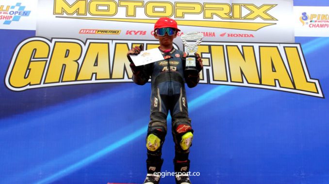 Enginesport.co – Fabrizio Cetta Alexy dari Gunung Kidul DIY kembali membuktikan tajinya. Bocil andalan tim Galls Racing JMTX X 123 Mini GP Academy ini menjadi champion Pocket Bike 8-9 Tahun Grand Final Motoprix Semarang 2025 (15-16/11). Lanjut gaspol di kelas 5-9 Tahun meraih podium ke 2.
