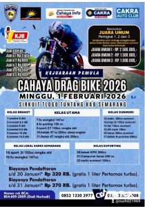 Info lainnya bisa pantengin flayer, pastikan daftar, siapkan pacuannya dan gaspol. Cahaya Drag Bike 2026 Tuntang bisa jadi ajang pemanasan sebelum ikut event SDC Semarang (8/1). Atau libas dua duanya sekaligus, kalau nembus 5 besar kan cuan jadi tambah banyak. Tunggu apa lagi race day tinggal menghitung hari, salam gaspol!. Unang