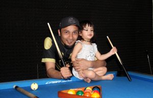 “Udah bisa nyodok nyodok bola biliar, tahu urutan nomornya juga. Keduanya dia suka, sementara push bike dulu, yang biliar sambil jalan,” kata Maulana Jaton.